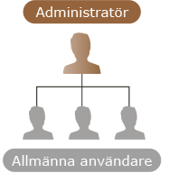 För att hantera maskinen, rekommenderar vi att du skapar ett system där någon utses som administratör och allmänna användare använder under ledning av administratör. Administratörerna sätter upp regler för användning av maskinen och gör viktiga inställningar för nätverk och säkerhet. Administratörerna anger åtkomst för varje användare när det behövs.