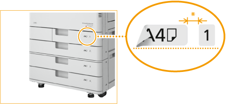 Sæt papirformatlabelen i samme højde som indikatoren for kassenummeret og ca. 5 mm til venstre.