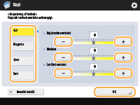 Justerer tætheden af gul, magenta, cyan eller sort hver for sig.