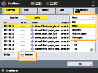 (Indstillinger/Registrering) <Administrationsindstillinger> <Enhedsadministration> <Begræns adgang til andre brugerjob> er indstillet til <Til>, vil andre job end dem, der gælder for den bruger, der er logget ind, vises som "***" og kan ikke betjenes. Hvis du logger ind med administratorrettigheder, vises jobs fra alle brugere. |