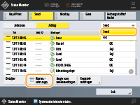 (Status Monitor), vises skærmen Status Monitor/Annullér, hvor du kan tjekke brugshistorikken for hver funktion som f.eks. kopiering, printning, afsendelse af e-mail, afsendelse/modtagelse af faxer/I-faxer, lagring af filer i "Avanceret område" osv. Fra denne skærm kan du også printe brugshistorikken for hver funktion.