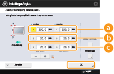 tryk på <OK>.Med følgende tre numeriske værdier justeres en enhed automatisk, så det forvrængede printområde muligvis bliver rettet.