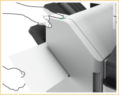 Introduza o conjunto de papel pretendido na ranhura existente no finalizador-agrafador ou finalizador de folhetos.