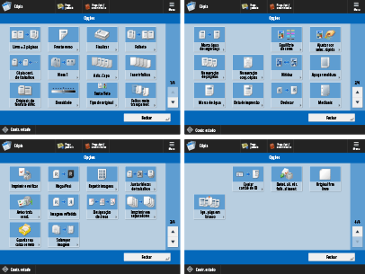 Ecrã das funções básicas de cópia