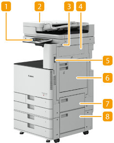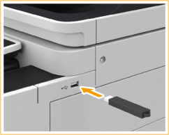 Pode ligar um dispositivo de memória USB às portas USB que se encontram no lado direito da máquina e imprimir dados diretamente a partir do dispositivo de memória USB. Os originais lidos utilizando a máquina também podem ser guardados diretamente no dispositivo de memória USB.