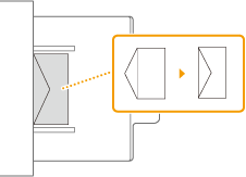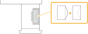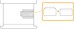 Se a impressão de envelopes colocados na orientação normal originar impressões vincadasColoque os envelopes conforme mostrado na figura e altere as programações e a orientação do original.