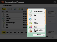 Selecione as funções a utilizar para o destino a partir de <Fax>, <Correio eletrónico>, <I-fax> ou <Ficheiro>.
