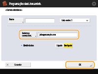 Se tentar enviar para um servidor de ficheiros/Caixa avançada em que a opção <Confirmar antes de enviar> esteja programada para <Ligado>, aparece um ecrã a pedir para introduzir um nome de utilizador e uma password. Nesse caso, introduza a password previamente programada. Se quiser gravar um servidor de ficheiros/Caixa avançada num endereço de grupo, programe <Confirmar antes de enviar> para <Desligado>. Não pode enviar para um endereço de grupo incluindo um servidor de ficheiros/Caixa avançada em que <Confirmar antes de enviar> esteja programado como <Ligado>.