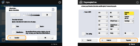 Se <Ativar ampliação de ecrã> estiver programado para <Ligado>, todo o ecrã é ampliado/reduzido quando se efetuam operações de aproximar e afastar os dedos no ecrã de pré-visualização. Se <Ativar ampliação de ecrã> estiver programado para <Desligado>, só é ampliada/reduzida a imagem de pré-visualização.