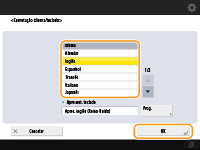 É possível alterar o idioma e a disposição do teclado apresentados no visor do painel digital. Se muda de idiomas com frequência, é conveniente utilizar o botão <Comutação idioma/teclado>. Siga o procedimento abaixo para apresentar este botão no visor do painel digital.