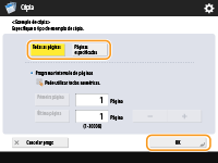 Selecione páginas para o exemplo de cópia e carregue em <OK>.