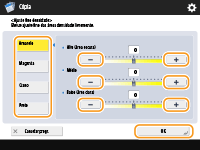 Ajusta a densidade de amarelo, magenta, ciano ou preto separadamente.