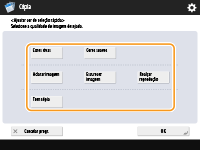 <Equilíbrio de cores> mudam automaticamente consoante a qualidade de imagem selecionada.Se selecionar <Tom sépia>, <Uma cor (Tom sépia)> aparece em <Selecionar cor> no ecrã de funções básicas.