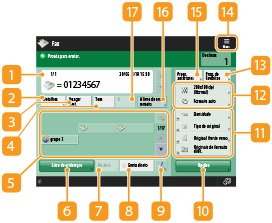Carregar em <Fax> (Ecrã <Início>) faz aparecer o ecrã das funções básicas de fax.