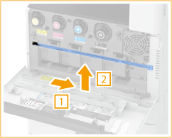 Se aparecerem riscas brancas ou se ocorrerem outros defeitos de impressão após a limpeza do vidro de exposição, do alimentador e da unidade principal, é possível que o vidro antipoeira esteja sujo. Nesse caso, siga o procedimento abaixo para limpar o vidro antipoeira.