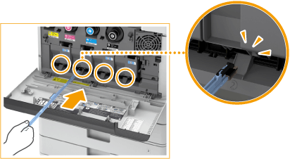 Introduza o pau de limpeza nos quatro orifícios para limpar os mesmos.