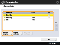 Se a opção <Formatar método codificação p/FIPS 140-2> estiver programada como <Ligado>, ocorrerá um erro ao tentar especificar um certificado para TLS que utilize um algoritmo não reconhecido pelas FIPS (inferior a RSA2048bit).