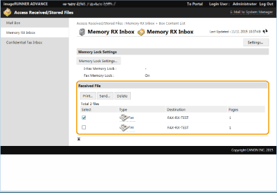 Selecione [Memory RX Inbox] e clique em [Memory RX Inbox].