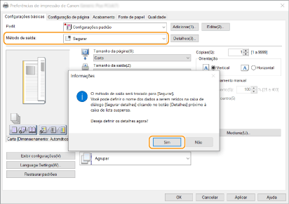Altere as programações de impressão conforme for necessário e clique em [OK].