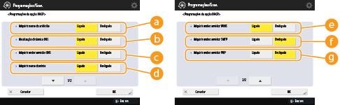 Selecione a opção <Ligado> para o endereço que pretende registar como servidor DNS em <Gravar endereço sem continuidade>/<Gravar endereço manual>/<Gravar endereço com continuidade>. Se todas as opções estiverem programadas para <Desligado>, não é possível efetuar a atualização automática.