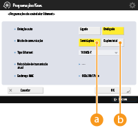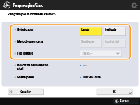 Normalmente, carregue em <Ligado> na opção <Deteção auto>. O sistema de comunicação e o tipo de Ethernet são detetados e automaticamente configurados.