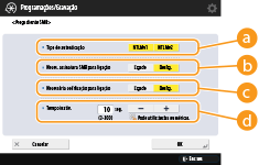 Quando o item <Necessária codificação para ligação> está programado para <Ligado>, a máquina só consegue estabelecer ligação a servidores SMB compatíveis com comunicação codificada SMB v3.0. Quando as opções <1.0> e <2.0> estão programadas para <Ligado> no item <Especificar versão cliente SMB>, mas a opção <3.0> não está programada para <Ligado>, a máquina não consegue estabelecer ligação a servidores SMB que não sejam compatíveis com comunicação codificada SMB v3.0.