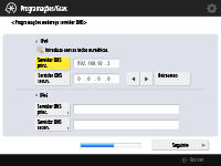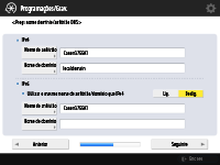 Carregue em <Servidor DNS princ.> e <Servidor DNS secun.>, introduza o endereço IPv4/IPv6 do servidor DNS e carregue em <Seguinte>.