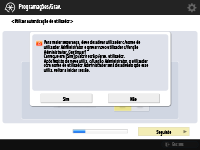 Para melhorar a segurança da máquina desativando o utilizador "Administrator" e gravando um novo administrador, carregue em <Sim>. Em <Gravar administrador>, introduza <Nome do utilizador> e <Password>, e carregue em <OK>. Especifique <Endereço correio elet.>, <ID dept.> e <Mostrar nome>, conforme for necessário. Para mais informações, consulte Gravar Informações do Utilizador no Dispositivo Local. O utilizador "Administrator" será desativado na próxima vez que iniciar sessão.