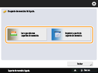Se <Selecionar opção ao ligar suporte de memória> estiver definido como <Ligado>, são apresentados atalhos para as funções disponíveis quando inserir um suporte de memória. <Selecionar opção ao ligar suporte de memória>
