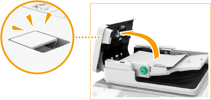 Puxe a alavanca para abrir a tampa do alimentador.