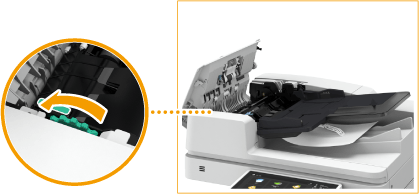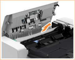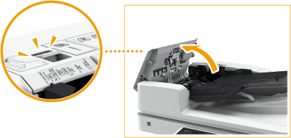 Levante o alimentador e verifique a posição indicada por