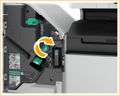 Rode o manípulo verde para enviar o papel encravado para o lado do Tabuleiro B.