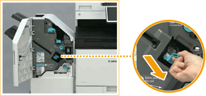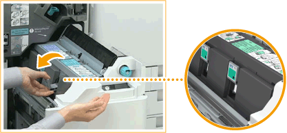 Volte a colocar o manípulo da cartridge de agrafos na posição original.