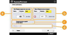 Невозможно настроить параметры печати отчета об управлении связью, если для параметра <Показать журнал заданий> в списке параметров <Параметры управления> задано значение <Выкл.>. Кроме того, если изменить значение параметра <Показать журнал заданий> в списке параметров <Параметры управления> с <Выкл.> на <Вкл.>, значение параметров печати отчета о работе факса <Печ./Отправка каждого указ. кол-ва пер.> и <Печать/Отправка в указанное время> автоматически меняется на <Выкл.>. <Показать журнал заданий>