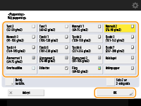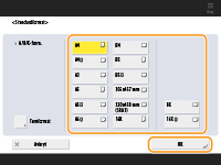 <OK>. Registrera ofta använda pappersformat och typer för universalfacket