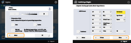 Förutom knappar som <Avbryt> som avbryter inställningen och återgår till föregående skärmbild, visas <Nästa> som gäller inställningen för att gå till nästa skärmbild, <Tillbaka> som återgår till föregående skärmbild för inställning och <Stäng> som stänger den öppna skärmbilden.