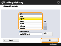 Tryck på <Växla språk/tangentbord>, välj ett språk i listan och tryck på <OK>.