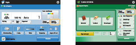 Du kan ändra vilka inställningsknappar som visas på skärmbilderna med grundläggande funktioner (för kopiering, fax och scanning). Du kan även visa en annan grundläggande funktionsskärmbild anpassad för varje inloggad användare.
