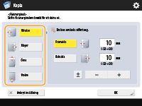 När marginalen har ställts in, förskjuts bilderna ett avstånd lika stort som marginalbredden. Ett original vars bild sträcker sig ända ut till kanterna på papperet kan bli något avklippt på kopian.