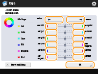 för <Alla färger>. För att ställa in varje knapp för sig, använd knapparna till höger och vänster om varje färg. När du är klar med justeringarna, tryck på <OK>.