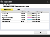 (Statusmonitor) visas skärmbilden Statusmonitor där du kan kontrollera tonernivån och andra statusalternativ.