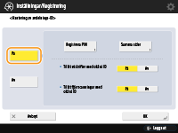 Om hantering av avdelnings-ID har aktiverats via Copy Card Reader, används de avdelnings-ID som har tilldelats till korten. Därför kan du inte registrera avdelnings-ID.