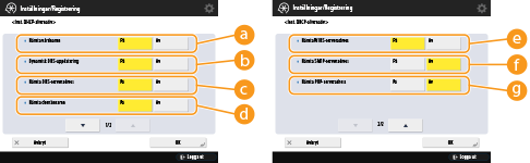För att ange samma värdnamn och domännamn som för IPv4, tryck på <På> i <Använd samma värd-/domännamn som IPv4>. För andra inställningar än för IPv4, tryck på <Av>.