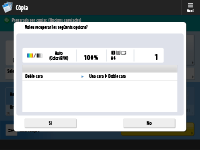 Si seleccioneu <On> per a <Mostrar pantalla de confirmació en retrucar> i per a <Iniciar recuperació (l'operació s'iniciarà en prémer el botó)>, la còpia s'inicia després de seleccionar <Sí> a la pantalla de confirmació.