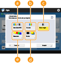 Podeu seleccionar el mode de color per a la còpia. Per exemple, això us permet estalviar tòner si copieu en blanc i negre originals que són en color o bé copieu tiquets amb un sol color, com ara el vermell o el blau, per indicar la data en què es distribueixen.
