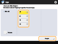 Si voleu copiar originals de mida lliure o originals amb una alta transparència, o bé si voleu copiar amb paper de la safata multiús, cal que seleccioneu el paper manualment.