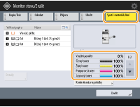 Stav zbývajícího množství spotřebního materiálu můžete zkontrolovat z Remote UI (Vzdálené UR). Kontrola stavu stroje
