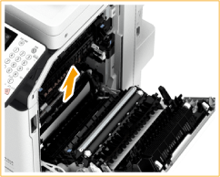 Pokud se papír zachytil, opatrně jej vytáhněte ve směru šipky.