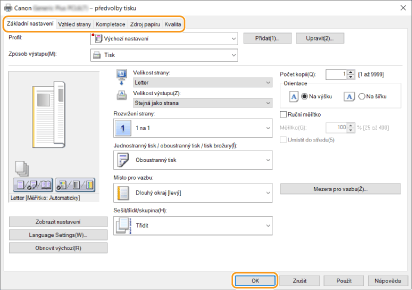 Podle potřeby zadejte nastavení tisku a klikněte na [OK].