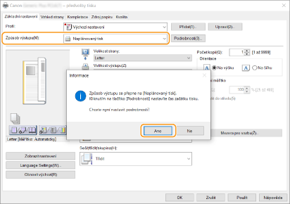 Naplánované tiskové úlohy se provedou podle času nastaveného ve stroji. Ověřte předem, zda čas nastavený ve stroji odpovídá času ve vašem počítači.